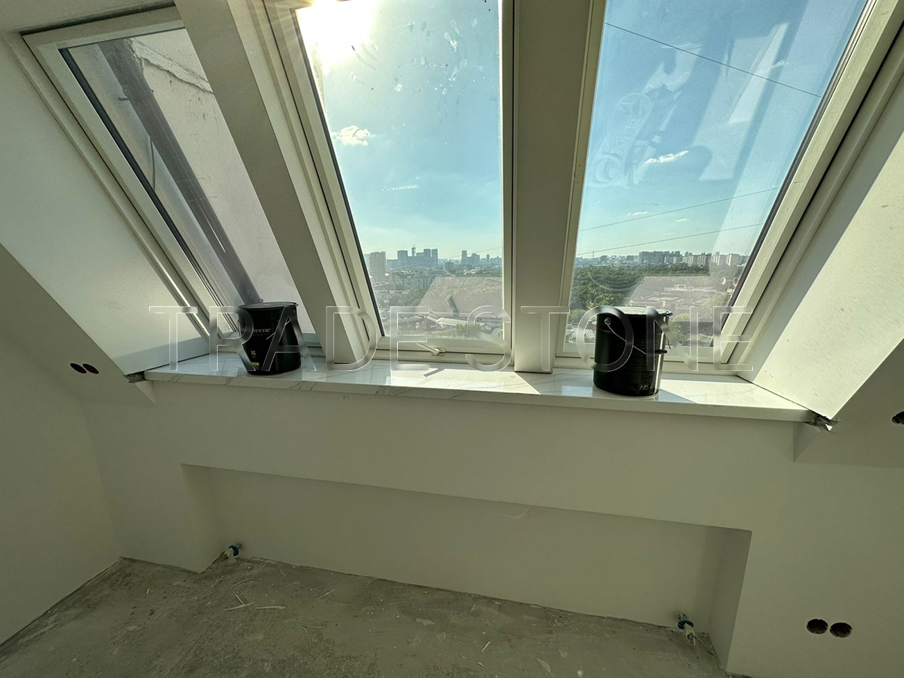 Преобразили мансардное помещение с панорамными окнами, установив подоконник из белого акрилового камня. Изделие выполнено по индивидуальным размерам — идеально вписалось в интерьер. Гладкая поверхность и лаконичный дизайн подчёркивают стиль комнаты, не отвлекая от завораживающего вида за окном.